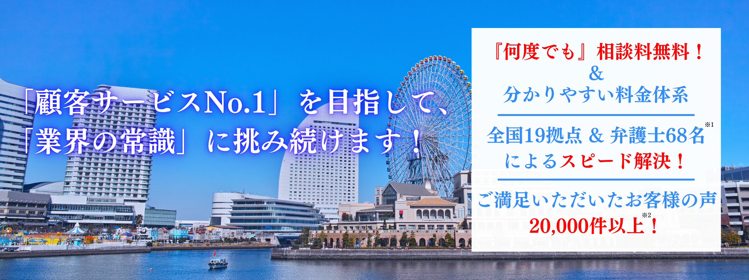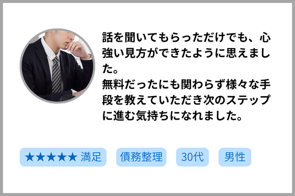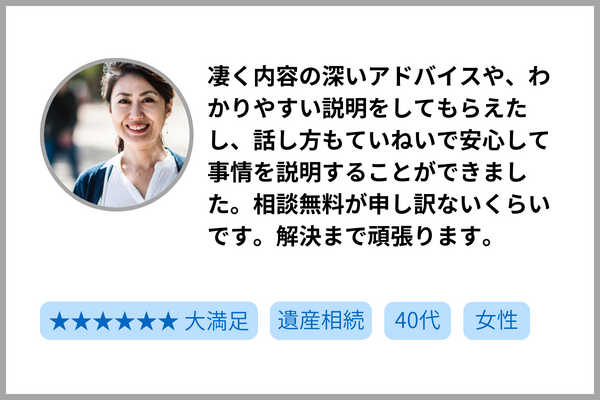 だからこそ、これまでに無料相談をお申し込みいただいたお客様で、ご満足の声をいただいた数は累計20,000件を超えており、依頼者の方に寄り添い、納得できる解決策を提案するよう徹底しております。